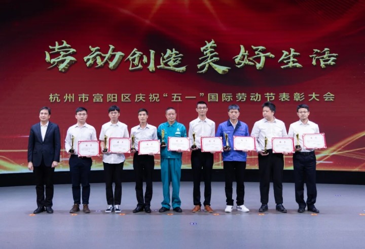 2022年4月29日,杭州市富陽區慶祝“五一”國際勞動節表彰大會在召開,公司徐崇玉研發團隊榮獲2021年度富陽區職工“突出貢獻獎”。