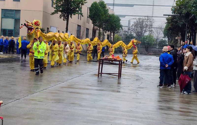 伴隨著激昂的鑼鼓聲,舞龍在廠區內穿梭騰躍,為全體華豐人吹響了新一年的奮斗號角;全體同仁齊聚一堂,以嶄新姿態開啟新一年的奮斗篇章,以實干篤行續寫企業發展新輝煌。