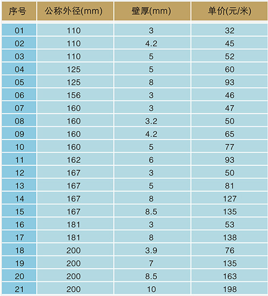 以上為管材常用規格,特殊規格可按客戶要求訂制。